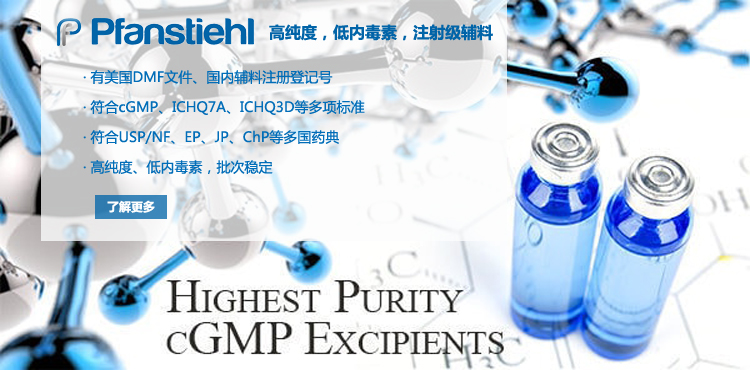 “熱烈祝賀Pfanstiehl的注射級甘氨酸Glycine(G-140)喜獲CDE登記號F20250000403, 這是Pfanstiehl產品獲得的第18個CDE登記號!”甘氨酸在醫藥輔料制劑中應用廣泛,, 可作為緩沖劑,增溶劑,穩定劑等,具有諸多優勢。Pfanstiehl秉承一貫高品質理念,為滿足全球生物制藥行業對于高品質甘氨酸的需求,隆重推出的注射級甘氨酸Glycine (G-140), 具有超高純度,超低內毒素,超低金屬殘留的特點,單獨檢測29種金屬離子,并且新增DNA,RNA,DNA酶,RNA酶和脂肪酶,亞硝酸鹽等多項質量指標的檢測,符合多國藥典規定(USP, EP, BP, JPE, ChP),可用于生物治療性藥物和疫苗的生產。產品信息:· 產品名稱:Glycine, High Purity, Low Endotoxin, Low Metals, USP, EP, BP, JPE, ChP (G-140)· 中文名稱:甘氨酸· 分子式:C2H5NO2· 分子量:75.07 g / mol· CAS號:56-40-6· 產品貨號:G-140產品特點: · 超高純度,超低內毒素,超低微生物含量,超低金屬雜質殘留· 質量指標新增DNA,RNA,DNA酶,RNA酶,脂肪酶和亞硝酸鹽檢測· 符合多國藥典:USP, EP, BP, JPE, ChP· 符合ICH Q3D標準· 符合GMP標準· 已獲DMF和CDE登記號 產品應用:· 緩沖劑· 穩定劑· 增溶劑如果您對Pfanstiehl注射級別Glycine G-140感興趣,歡迎聯系Pfanstiehl 中國區代理商北京西美杰科技有限公司獲得如下詳細的產品概況說明文件和測試樣品。Pfanstiehl Inc.最新產品系列如下,歡迎聯系北京西美杰科技有限公司獲取100g裝免費樣品。北京西美杰科技有限公司為Pfanstiehl中國代理,為客戶提供完善的技術支持與售后服務。歡迎撥打西美杰客服電話400-050-4006或者登陸網站www_xmjsci_com.hzygsg.cn了解更多信息。 更多>